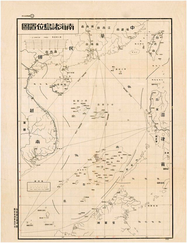 历史上,中国绘制的官方舆图中曾多次出现标有南海诸岛的海图,但受限于技术条件,未能形成具有现代勘测意义的明确疆域界线。1947年起,时任内政部方域司司长的傅角今组织召开了一系列关于南海诸岛主权之确定与公布会议,为此后的中国南海主权确定了基调和范围。为使西沙、南沙群岛主权范围具体化,内政部方域司印制郑资约所绘的《南海诸岛位置图》。该图具备三个要点:其一,再次明确国界线最南端标在北纬4°,将此处的“曾母滩”更名为“曾母暗沙”,并含括在我国海疆线之内;其二,按照诸岛在南海海域中所处地理位置,将“团沙群岛”改名为“南沙群岛”,将原“南沙群岛”改名为“中沙群岛”,并完整地标明东沙群岛、西沙群岛、中沙群岛和南沙群岛的位置和岛屿名称;其三,最关键之处,是该图用11段国界线,圈定了中国南海海域范围,成为今天中国南海主权九段线的来源。